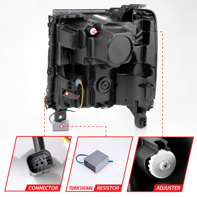 Projector Headlight Set, Clear Lens, Black Housing, w/LED, Pair, . Guaranteed To Improve Your Vehicles Appearance. Rigorously Tested For Fit And Function. Simple Plug And Play. No Modifications Required. Easy Installation Using Common Hand Tools. Uses Stock Mounting Locations And Hardware. D.O.T. Compliant To S.A.E. Standards. Sold As A Pair.