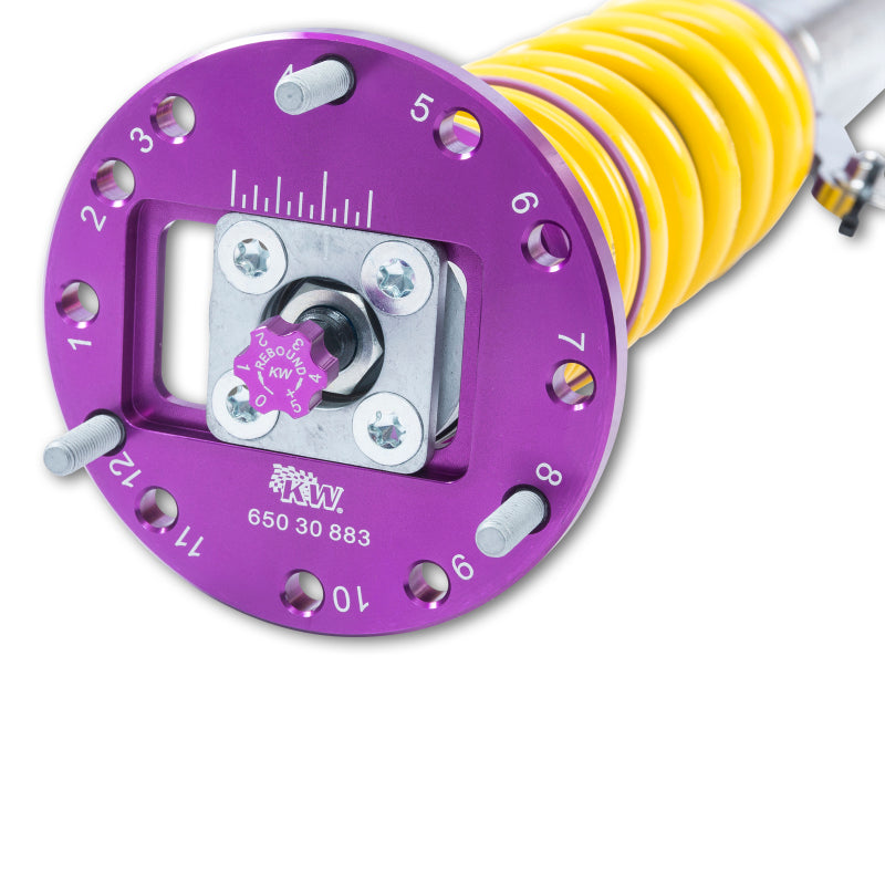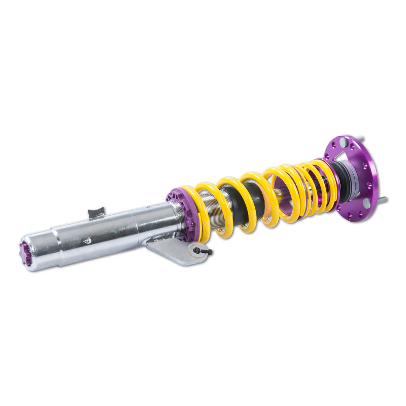 Designed to maximize the performance on vehicles with DOT-R and other ultra high-performance tire setups. KW Clubsport 2-Way coilovers are the ideal choice for double-duty street cars, use at HPDE's(high performance drivers education), time attack or time trials, and club level racing.The Clubsport setup was specially designed on the Nordschleife and the continuous adjustable ride height allows for fine corner weight or making setup changes. The TVR-A and TVC-A valve technology -rovide an unmatched level of separately adjustable damping for the rebound and compression enabling a customized set up appropriate for the vehicle's modifications such as weight, tire characteristics, and other various conditions. The KW Clubsport 2-Way INOX-LINE coilover kit is the ideal tool for performance-oriented drivers and experienced tuning enthusiasts who place a strong emphasis on the overall performance of their suspension. The KW 2-Way Clubsport features patented TVR-A and TVC-A technology -hat provides separately adjustable rebound and compression damping. The extensive Adjustment -ange of the independently configurable rebound and compression make it easy to directly influence the steering behavior, directional stability, grip and handling characteristics for confident and repeatable results at the limit of driving dynamics.