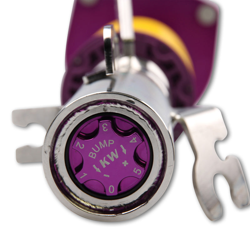 Designed to maximize the performance on vehicles with DOT-R and other ultra high-performance tire setups. KW Clubsport 2-Way coilovers are the ideal choice for double-duty street cars, use at HPDE's(high performance drivers education), time attack or time trials, and club level racing.The Clubsport setup was specially designed on the Nordschleife and the continuous adjustable ride height allows for fine corner weight or making setup changes. The TVR-A and TVC-A valve technology -rovide an unmatched level of separately adjustable damping for the rebound and compression enabling a customized set up appropriate for the vehicle's modifications such as weight, tire characteristics, and other various conditions. The KW Clubsport 2-Way INOX-LINE coilover kit is the ideal tool for performance-oriented drivers and experienced tuning enthusiasts who place a strong emphasis on the overall performance of their suspension. The KW 2-Way Clubsport features patented TVR-A and TVC-A technology -hat provides separately adjustable rebound and compression damping. The extensive Adjustment -ange of the independently configurable rebound and compression make it easy to directly influence the steering behavior, directional stability, grip and handling characteristics for confident and repeatable results at the limit of driving dynamics.