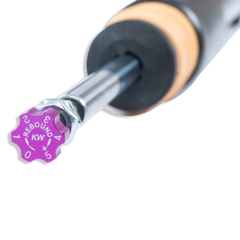 KW Variant 2 INOX-LINE coilovers are the perfect solution for drivers who want more than just outstanding looks and adjustable ride height. In addition to stainless steel coilover struts, and corrosion-resistant components built for long term durability, KW Variant 2 coilovers utilize TVR-A (Twin Valve Rebound - Adjustable) technology -o allow Adjustment -f the rebound damping characteristics with 16 clicks so you can fine tune the ride comfort or performance to your satisfaction. As with all KW coilovers our engineers develop vehicle specific damper settings that undergo comprehensive testing on the Nurburgring Nordschleife and in our KW 7-post Driving Dynamic Test Center. With a KW coilover kit the driving experience is more dynamic and direct. With the rebound adjustability you have more direct influence on the handling or comfort of the car. With 16 precise clicks you can adjust the KW dampers (more firm or more comfortable) without affecting the compression damping fine-tuned by our engineers. The two-stage, patented TVR-A (Twin Valve Rebound - Adjustable) technology -nables a small volume of oil flow through an adjustable, conically shaped, low-speed bypass during low damper speeds, while at high damper speeds, the main rebound stage valve opens allowing a larger volume of oil to flow. This provides a big improvement in terms of ride comfort without influencing the high-speed range. There are 16 precise clicks available for individual settings, so you can choose between more comfort or more body control. For over 20 years, KW automotive has been the market leader and driving innovation as a manufacturer of individual suspension solutions for the road and in all types of motorsports. No matter where in the world, gearheads, automobile manufacturers and reputable tuners rely on our KW coilovers made in Germany. With an application list comprising more than 4,600 options KW guarantees an outstanding selection backed by our Limited Lifetime Warranty.