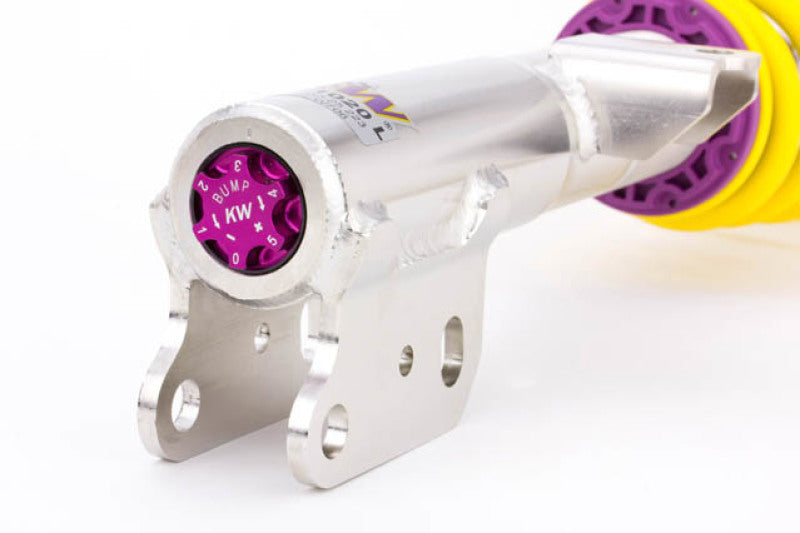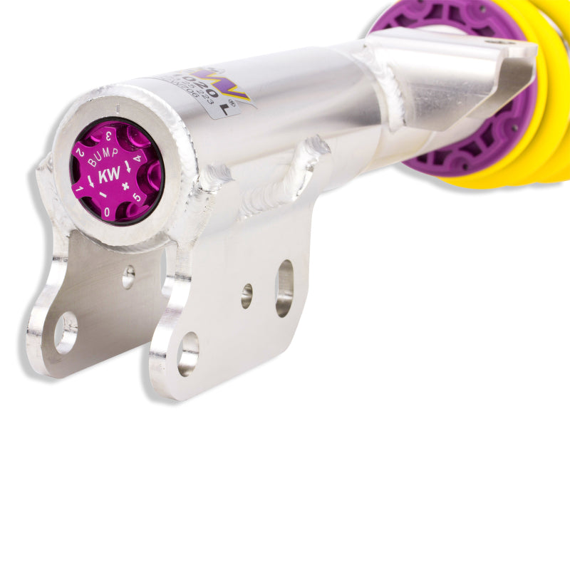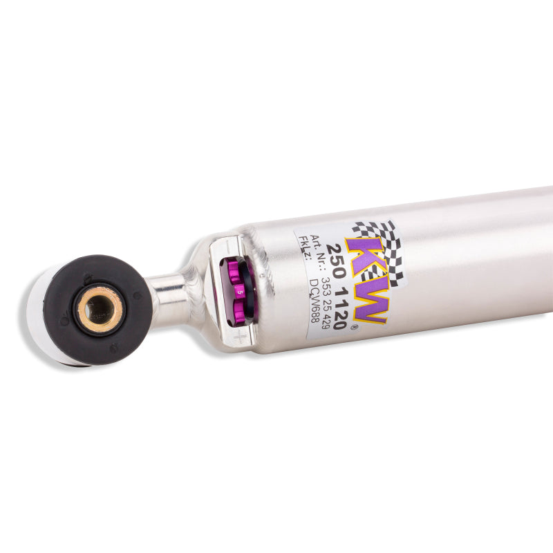 Cutting-edge motorsports technology -or more performance on the road. Like every suspension product developed by KW automotive and manufactured in Germany, the KW Variant 3 Coilover suspension kit also provides a significant improvment on the road. Thanks to the high-quality dampers, springs, and elastomer spring elements, pitching and rolling movements during load changes such as evasive maneuvers, cornering, acceleration, and braking are significantly reduced. The braking distances are also shortened. Thanks to improved support and feedback, drivers not only feel more confident but driving in everyday life is improved. With compression and rebound stage damping, that can be set separately and independently of each other, the damper setup can be customized to your personal driving preferences or vehicle changes such as weight, tire characteristics, or altered vehicle rigidity. True performance optimization is only possible with this unique, patented system. For example, this allows the compression damping force to be increased and get more grip from the tires, to improve cornering behavior and reduce squat without simultaneously altering the rebound stage damping which is optimally matched to the spring rate ? a scenario which results in reduced grip and the associated loss of performance. The KW Variant 3 INOX-LINE coilover kit is the ideal tool for performance-oriented drivers and experienced tuning enthusiasts who place a strong emphasis on the overall performance of their suspension. The Variant 3 features patented TVR-A and TVC-A technology -hat provides separately adjustable rebound and compression damping. The extensive Adjustment -ange of the independently configurable rebound and compression make it easy to directly influence the steering behavior, directional stability, grip and handling characteristics for confident and repeatable results at the limit of driving dynamics.