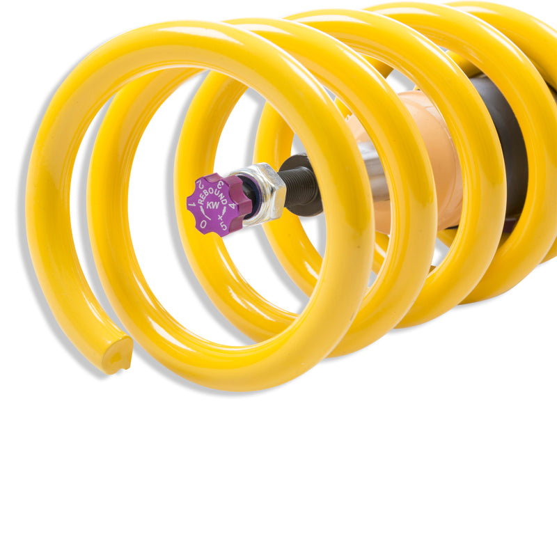Cutting-edge motorsports technology -or more performance on the road. Like every suspension product developed by KW automotive and manufactured in Germany, the KW Variant 3 Coilover suspension kit also provides a significant improvment on the road. Thanks to the high-quality dampers, springs, and elastomer spring elements, pitching and rolling movements during load changes such as evasive maneuvers, cornering, acceleration, and braking are significantly reduced. The braking distances are also shortened. Thanks to improved support and feedback, drivers not only feel more confident but driving in everyday life is improved. With compression and rebound stage damping, that can be set separately and independently of each other, the damper setup can be customized to your personal driving preferences or vehicle changes such as weight, tire characteristics, or altered vehicle rigidity. True performance optimization is only possible with this unique, patented system. For example, this allows the compression damping force to be increased and get more grip from the tires, to improve cornering behavior and reduce squat without simultaneously altering the rebound stage damping which is optimally matched to the spring rate ? a scenario which results in reduced grip and the associated loss of performance. The KW Variant 3 INOX-LINE coilover kit is the ideal tool for performance-oriented drivers and experienced tuning enthusiasts who place a strong emphasis on the overall performance of their suspension. The Variant 3 features patented TVR-A and TVC-A technology -hat provides separately adjustable rebound and compression damping. The extensive Adjustment -ange of the independently configurable rebound and compression make it easy to directly influence the steering behavior, directional stability, grip and handling characteristics for confident and repeatable results at the limit of driving dynamics.