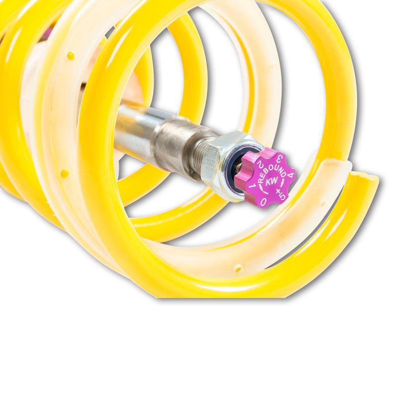 Cutting-edge motorsports technology -or more performance on the road. Like every suspension product developed by KW automotive and manufactured in Germany, the KW Variant 3 Coilover suspension kit also provides a significant improvment on the road. Thanks to the high-quality dampers, springs, and elastomer spring elements, pitching and rolling movements during load changes such as evasive maneuvers, cornering, acceleration, and braking are significantly reduced. The braking distances are also shortened. Thanks to improved support and feedback, drivers not only feel more confident but driving in everyday life is improved. With compression and rebound stage damping, that can be set separately and independently of each other, the damper setup can be customized to your personal driving preferences or vehicle changes such as weight, tire characteristics, or altered vehicle rigidity. True performance optimization is only possible with this unique, patented system. For example, this allows the compression damping force to be increased and get more grip from the tires, to improve cornering behavior and reduce squat without simultaneously altering the rebound stage damping which is optimally matched to the spring rate ? a scenario which results in reduced grip and the associated loss of performance. The KW Variant 3 INOX-LINE coilover kit is the ideal tool for performance-oriented drivers and experienced tuning enthusiasts who place a strong emphasis on the overall performance of their suspension. The Variant 3 features patented TVR-A and TVC-A technology -hat provides separately adjustable rebound and compression damping. The extensive Adjustment -ange of the independently configurable rebound and compression make it easy to directly influence the steering behavior, directional stability, grip and handling characteristics for confident and repeatable results at the limit of driving dynamics.