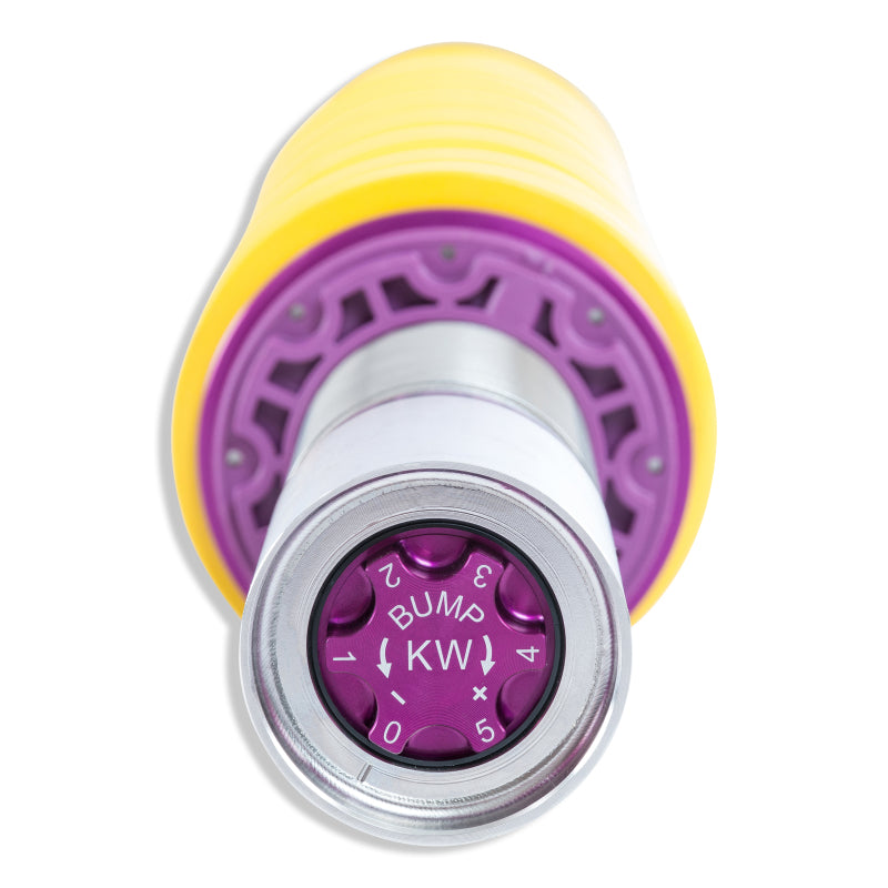 Cutting-edge motorsports technology -or more performance on the road. Like every suspension product developed by KW automotive and manufactured in Germany, the KW V3 Coilover suspension kit also provides a significant improvment on the road. Thanks to the high-quality dampers, springs, and elastomer spring elements, pitching and rolling movements during load changes such as evasive maneuvers, cornering, acceleration, and braking are significantly reduced. The braking distances are also shortened. Thanks to improved support and feedback, drivers not only feel more confident but driving in everyday life is improved. With compression and rebound stage damping, that can be set separately and independently of each other, the damper setup can be customized to your personal driving preferences or vehicle changes such as weight, tire characteristics, or altered vehicle rigidity. True performance optimization is only possible with this unique, patented system. For example, this allows the compression damping force to be increased and get more grip from the tires, to improve cornering behavior and reduce squat without simultaneously altering the rebound stage damping which is optimally matched to the spring rate ? a scenario which results in reduced grip and the associated loss of performance. The KW V3 INOX-LINE coilover kit is the ideal tool for performance-oriented drivers and experienced tuning enthusiasts who place a strong emphasis on the overall performance of their suspension. The V3 features patented TVR-A and TVC-A technology -hat provides separately adjustable rebound and compression damping. The extensive Adjustment -ange of the independently configurable rebound and compression make it easy to directly influence the steering behavior, directional stability, grip and handling characteristics for confident and repeatable results at the limit of driving dynamics.