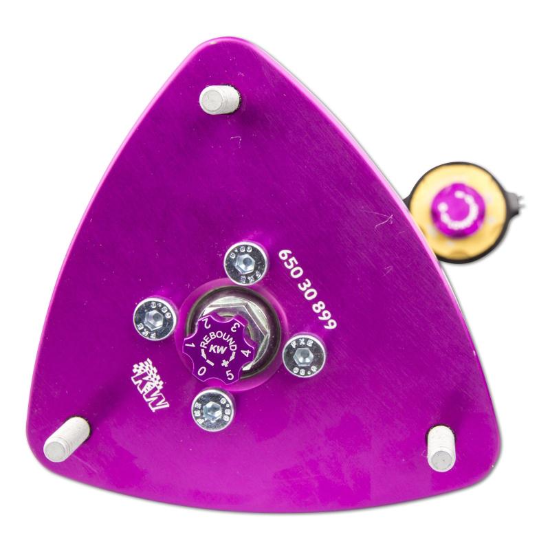 Using the Nordschleife as it's testing grounds and the 7-post rig, KW developed it's 3-way Clubsport coilover kit. Wheel loads, vehicle weight and chassis reinforcements (increased body stiffness) can all be taken into consideration with Adjustment -apabilities of the 3-way Clubsport. The KW Clubsport coilovers combine KW's high-end racing technology -ith maintenance-free KW OEM quality components. Designed to provide you the ideal product to utilize the full potential of your sports car during autocross, track days, high performance drivers education (HPDE) courses, club racing, and is tested rigorously on race tracks such as the Nurburgring Nordschleife. Race teams rely on KW's racing expertise and experience for their vehicle setup. This same championship winning pedigree is mirrored in the development of each one of the KW Clubsport coilover systems. Similar to the KW Competition suspension used in international motorsports, the KW 3-Way Clubsport coilover kit allows fine tuning of the compression damping separately in the low-speed and high-speed range. The click adjustments of the TVCLH-A valve technology -ake for easy Adjustment -irectly on the reservoir. You can modify the low-speed compression damping with 6 precise clicks with the purple low speed Adjustment -ial and directly beneath it the golden Adjustment -heel provides an additional 14 precise clicks of high speed compression adjustment. In addition, the TVR-A technology -rovides 16 clicks to noticeably adjust the rebound damping independently of the compression damping. If you would like to adjust the KW 3-Way Clubsport coilover kit it can easily be adjusted for more comfort or to an alternative setup for a new race track. The KW 3-Way Clubsport benefits from the same motorsports technology -hat has proven its endurance with multiple overall wins at the ADAC Zurich 24h Nurburgring race.