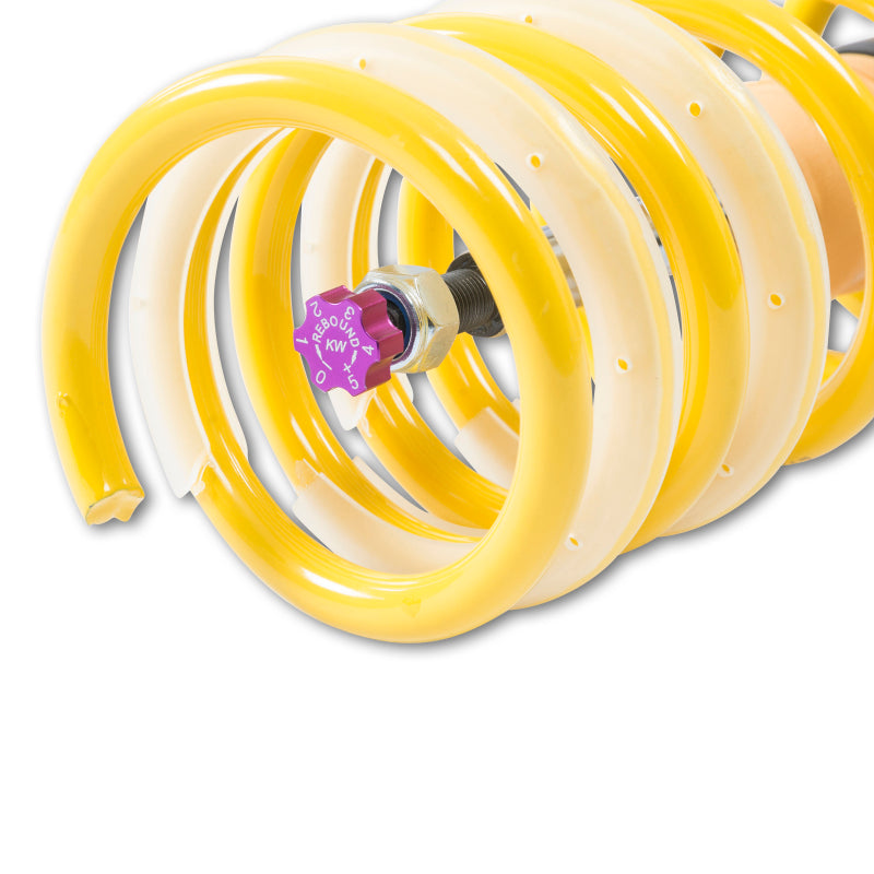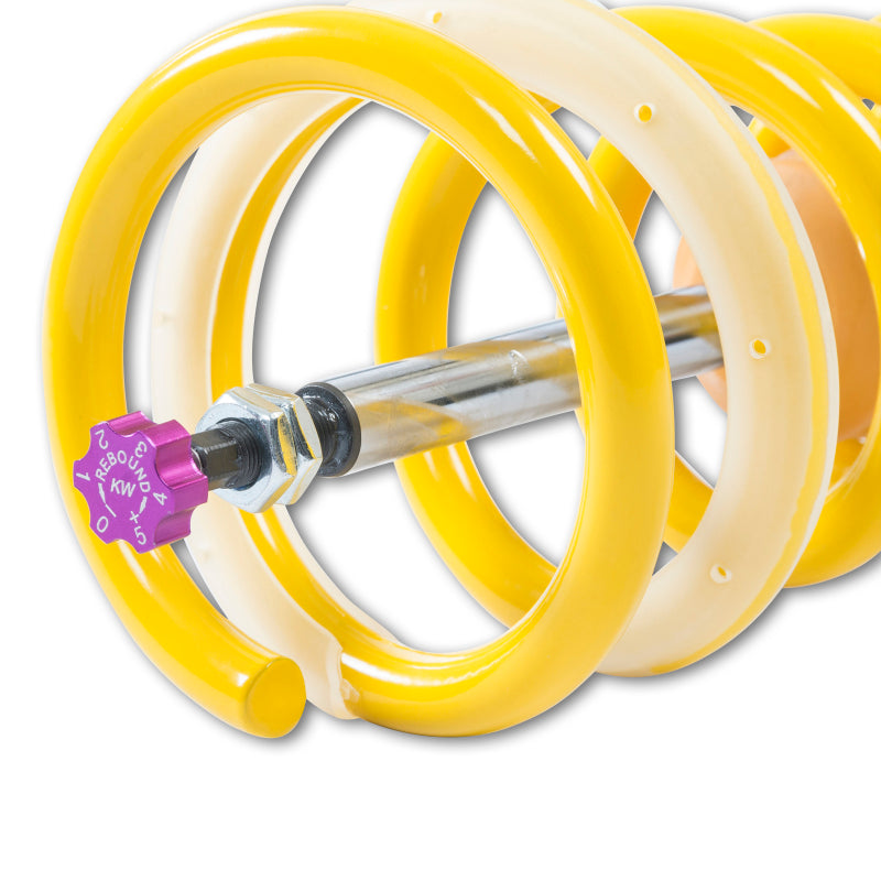 KW Street Comfort INOX-LINE coilovers are the perfect solution for drivers who want maximum ride comfort and a more discreet lowering range. In addition to stainless steel coilover struts, and corrosion-resistant components built for long term durability, KW Street Comfort coilovers utilize TVR-A (Twin Valve Rebound - Adjustable) technology -o allow Adjustment -f the rebound damping characteristics with 16 clicks so you can fine tune the ride comfort to your satisfaction. As with all KW coilovers our engineers develop vehicle specific damper settings that undergo comprehensive testing on the vehicles and in our KW 7-post Driving Dynamic Test Center. With a KW Street Comfort coilover kit the driving experience is tailored for absolute comfort. With the rebound adjustability you have direct influence on the handling and comfort of the car. With 16 precise clicks you can adjust the KW dampers (more firm or more comfortable) without affecting the compression damping fine-tuned by our engineers. The two-stage, patented TVR-A (Twin Valve Rebound - Adjustable) technology -nables a small volume of oil flow through an adjustable, conically shaped, low-speed bypass during low damper speeds, while at high damper speeds, the main rebound stage valve opens allowing a larger volume of oil to flow. This provides a big improvement in terms of ride comfort without influencing the high-speed range. There are 16 precise clicks available for individual settings, so you can choose between more comfort or more body control. For over 20 years, KW automotive has been the market leader and driving innovation as a manufacturer of individual suspension solutions for the road and in all types of motorsports. No matter where in the world, gearheads, automobile manufacturers and reputable tuners rely on our KW coilovers made in Germany. With an application list comprising more than 4,600 options KW guarantees an outstanding selection backed by our Limited Lifetime Warranty.